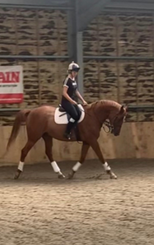 Pippin is a 10yr old Anglo-Arab. Same home for last 4 years. Easy to do in all ways, good to hack alone and in company. Good in traffic etc. Pippin has done lot of UA dressage to novice level and has wins and places doing this. He is training at elementary and is very good at lateral work. He’s also gone on fun rides, to hunter trials and SJ. He is happiest doing dressage competition wise, he wouldn’t be brave enough for an eventing/SJ home. He is a very kind horse, is handled by children. Travels in a lorry or trailer. Easy to take out.