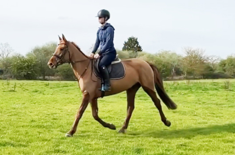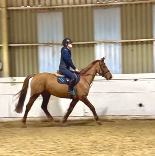 Rusty Ideal Mother Daughter Share Fantastic XC & SJ Beautiful temperament A lovely quality mare with both Irish and Warmblood breeding that has been well produced in Ireland and has recently been imported. Rusty has been lightly hunted a few times in Ireland and has been to a few Training shows. A very simple mare to ride that rides sweetly on the flat and has been Xc schooling with us proving to be a real star - happily going first or last, calm and sensible but very brave Xc. She is happy to ride around a course of showjumps and currently schooling around 80 & 90cm with tons of scope to spare. A mare that is great to handle, hacks really well alone or in a group and is excellent in traffic. Rusty is easy to catch, lead, tie up etc and is very polite to load up and good with the farrier. A kind and charming horse to have about the yard - she would be a great horse for mum and teenage daughter to share or would go on to be a super PC Eventer or Showjumper. A super blank canvas that is looking for a kind genuine home where her education can be brought on and where she will be loved and pampered.