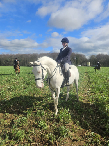 Elsa was broken in February 2025 and since then had a very easy life. She has mainly done lots of hacking, lightly schooled and very little jumping. She has attended a several hunting days, including Boxing Day and New Year’s Day busy meets. She is not going to be in the Olympics but she is a lovely nature that will make the most fabulous allrounder once someone has put some time into her over the summer. She has spent some time in our education site where kids handled, groomed and lunged her, where she had no problems. She hacks alone and in company and will jump, not phased by fillers. Has seen limited cross country jumps whilst out hunting and this has not bothered her. I wouldn’t recommend suitable for a novice ride as she is still green, she does not have vices and is not dangerous but does needs more education is all aspects of ridden work. However, she does not need a professional to do this and is very genuine. She’s good to do everything with, clips without being tied up, good to bath (thankfully with her colour) will stand all day to be groomed. Currently bare foot turns out with other mares and geldings. Does not have any vices. She does have a scar on her back leg that is permanent due to an injury in the field as a 2year old, this doesn’t affect her, cause her pain and is not noticeable unless looking for it.